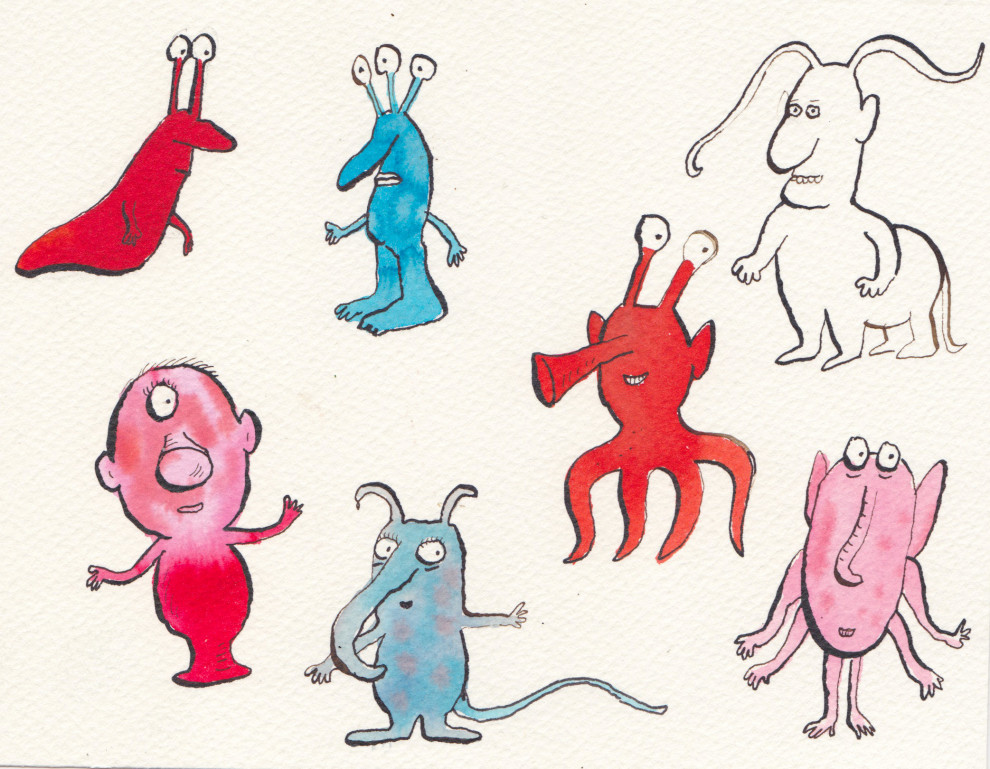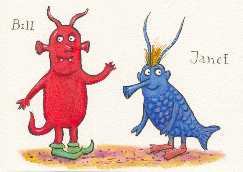 Julia has written about every subject on earth - from sticks and snails to Highway robbers - so we had to move into outer space! I love the message of this book that we should really embrace 'the other': that they are not really that different at all and that we can make friends with them. (As the father of a French-German child it is especially significant for me since the French and the Germans have been 'arch enemies' for long periods of history.) I enjoyed the freedom drawing those crazy aliens, as much as Julia enjoyed making up all those nonsense words. I wonder what she'll come up with next?!